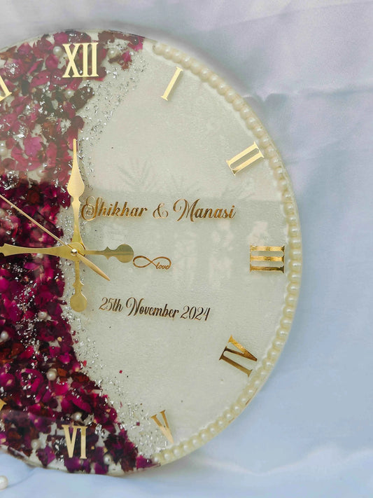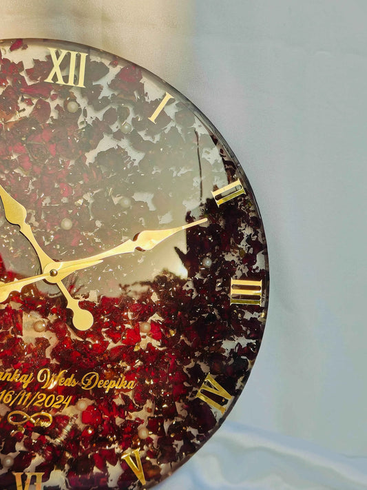 Resin Art Rose Preserved Wall Clock | Resin Wedding Flower & Varmala Preservation
